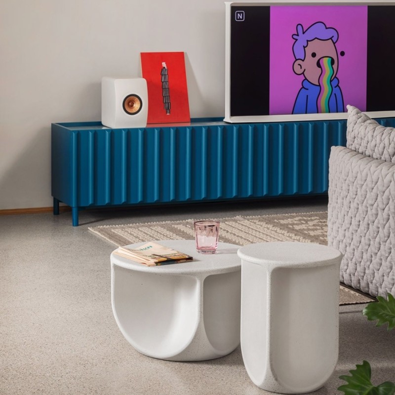 La table basse Pinto de Miniforms, conçue par Skrivo, est un élément d'ameublement qui allie design sculptural et fonctionnalité, adaptée aux espaces intérieurs et extérieurs. Pinto se distingue par sa forme monolithique et sa texture qui évoque la tradition artisanale, tout en utilisant un matériau contemporain comme le ciment. Sa résistance aux conditions climatiques en fait un choix idéal pour une utilisation en extérieur, tandis que son esthétique raffinée le rend parfait pour des intérieurs modernes.