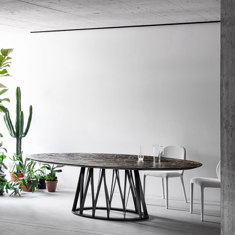 Il tavolo Acco di Miniforms è un pezzo di design distintivo e raffinato, ideale per soggiorni moderni che puntano su stile e originalità. Caratterizzato da una struttura unica in legno massello, il tavolo presenta una base a incrocio, composta da sottili listelli disposti in modo dinamico, creando un effetto visivo di grande impatto. Acco propone è disponibile anche nelle versione col piano ovale o rotondo, progettato per garantire più margine di scelta ai propri clienti.