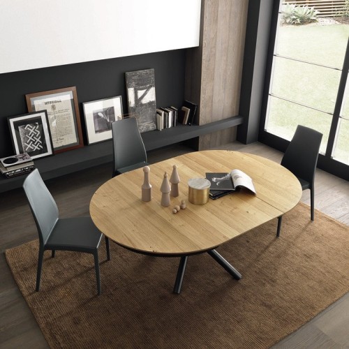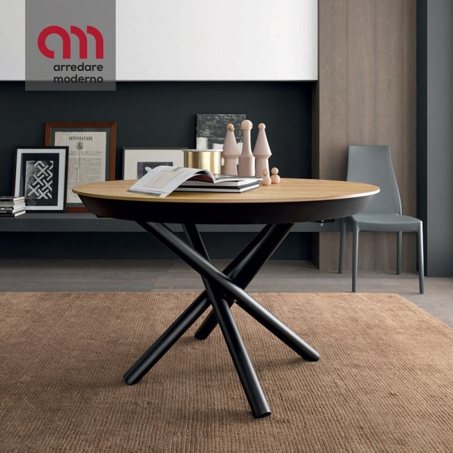 Fahrenheit Altacom Round ist ein runder ausziehbarer Tisch, mit Basis aus Metall und Tischplatte in verschiedenen Ausführungen. Integrierte Verlängerung.