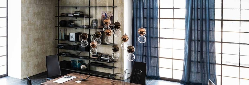 Die modernen Kronleuchter und Hängeleuchten können aus einem oder mehreren Elementen bestehen, die von der Decke herabhängen, je nachdem, wie viel Licht in dem jeweiligen Raum gewünscht wird.