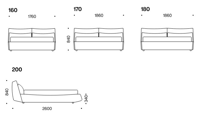 Gepolstertes und bezogenes Bett (Bezug nicht abnehmbar) in den folgenden Kategorien:
