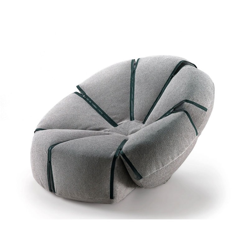 Kalla zitiert und interpretiert ironisch die gemütlichen und komfortablen Formen der klassischen Wohnzimmersessel und sein Autor, Gianni Arnaudo, geht über die häuslichen Grenzen, um zu ermöglichen, Gärten und dehors zu bereichern. Bequem und leicht, verzicht er nicht auf Komfort und Eleganz, dank der großen Kissen, mit denen der Sitz ausgestattet ist. Eine perfekte Synthese von Form und Funktion, ist Kalla auch ein unerwartetes Lichtselement, mit einer Lichtbasis, dass ihn etherisch und den wahren Protagonisten der Räume macht.