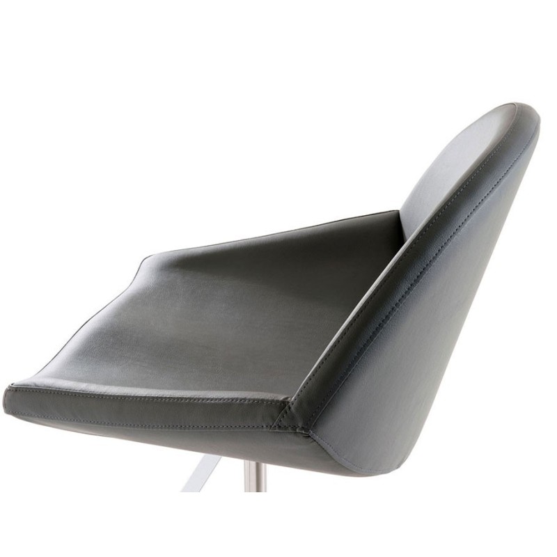 Der Aufbau des Stuhls zeichnet sich durch eine schlagfeste Polycarbonat-Schale und ein Gestell aus naturbelassenem oder wengefarbenem Buchenholz aus.