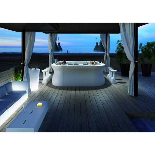 Bartolomeo Bar-Theke Plust aus Polyethylene ist ein lineares Element, deren ästhetische Form sich aus der ergonomischen Anforderung ergab, viele Personen bequem um sie herum sitzen zu lassen. Sehr vielseitig und funktional erlaubt die BARTOLOMEO Bar-Theke unbegrenzte Einsatzmöglichkeiten: Als Rezeptions-Tresen, Bedienungs-Pult, Bar-Theke und Konsolen. Dank der vollständigen Barzubehöre Serie eignet sich das BARTOLOMEO Barmöbel perfekt für gesellige Nächte im Haus oder im Garten.