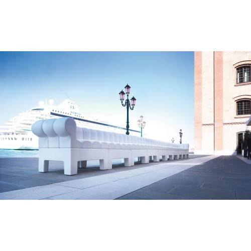 Modì Myyour est un canapé recouvert d'éco-cuir. Il fait partie de la ligne Modì conçue pour offrir une liberté d'espace, en fait, il peut être combiné avec le siège Modì pour augmenter sa taille. Convient pour la décoration d'environnements extérieurs et intérieurs. La base est entièrement réalisée en polyéthylène Poleasy, un matériau dont le but est d'éliminer les micropores de surface qui provoquent des patines disgracieuses au fil du temps. De plus, ce type de polyéthylène garantit des surfaces plus compactes, durables et faciles à nettoyer.