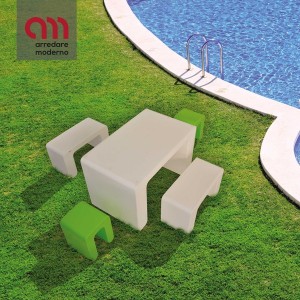 Petite table Zip Set Kloris réalisé entièrement en polyethylene en différentes couleurs avec plateau en plexiglas, idéale pour l'intérieur et l'extérieur.