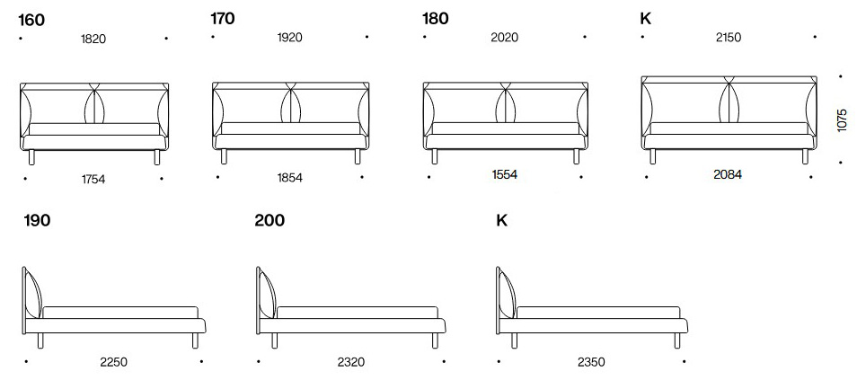 Disponible dans les dimensions suivantes (les mesures indiquées correspondent à l’encombrement du matelas et du sommier) :