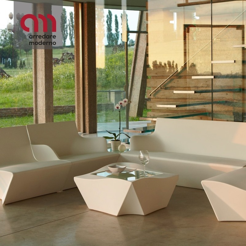 C'est une table basse conçue par le designer français Marc Sadler, la nouvelle collection KAMI. De l'origami, l'ancien art japonais du pliage du papier, dérive la philosophie de cette table KAMI Ni, dotée de verre, qui, grâce à sa forme originale, peut être combinée avec toutes les chaises de la famille KAMI. La collection est modulaire, donnant à chacun la liberté de l'adapter à ses besoins pour créer d'innombrables solutions qui s'adaptent à tous les environnements intérieur ou extérieur.