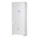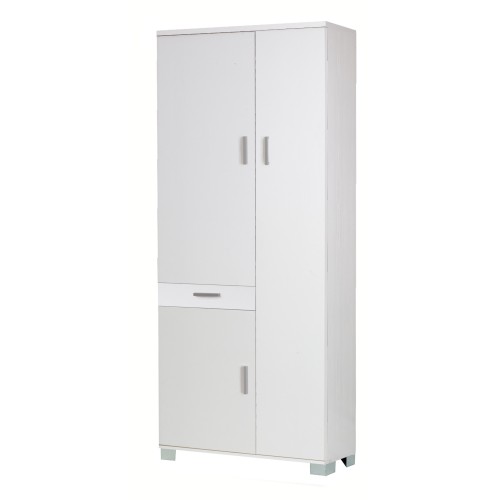 Struttura in legno nobilitato sp. 20mm e ante sp. 16mm, bordo PVC senza angolo vivo. Contiene 6 ripiani regolabili .Maniglie e piedini verniciati cromo satinato.