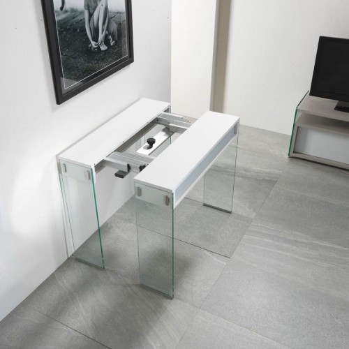 Consolle dal design moderno e attuale che all'occorrenza si trasforma in un comodo tavolo, allungabile fino a 270 cm. Disponibile in diverse finiture, è ideale per soddisfare qualsiasi tipo di esigenza, funzionale ed estetica.