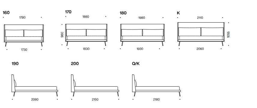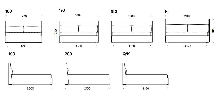 Letto imbottito e rivestito (non sfoderabile) nelle seguenti categorie: