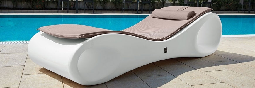 Lettino Ponente Slide reclinabile in 4 posizioni e realizzato interamente in polietilene nelle finiture standard e laccate. Accessoriabile con cuscino. -