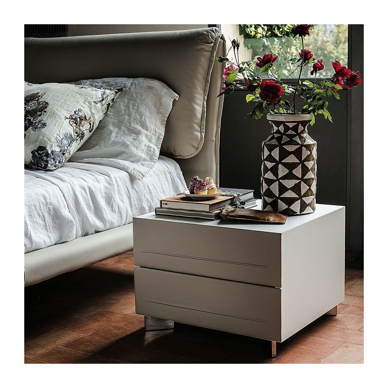 La struttura è realizzata in legno laccato, il rivestimento è in pelle ecologica.