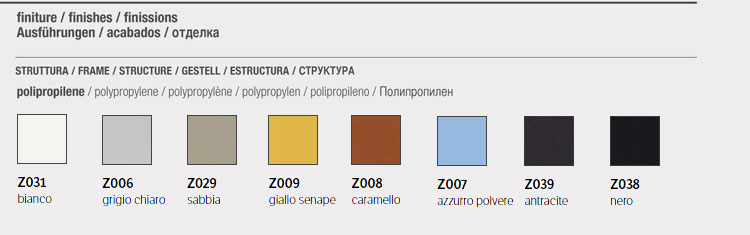Accessoriabile con pad seduta in lana naturale o con cuscino seduta in poliuretano per esterno disponibile nei seguenti colori: