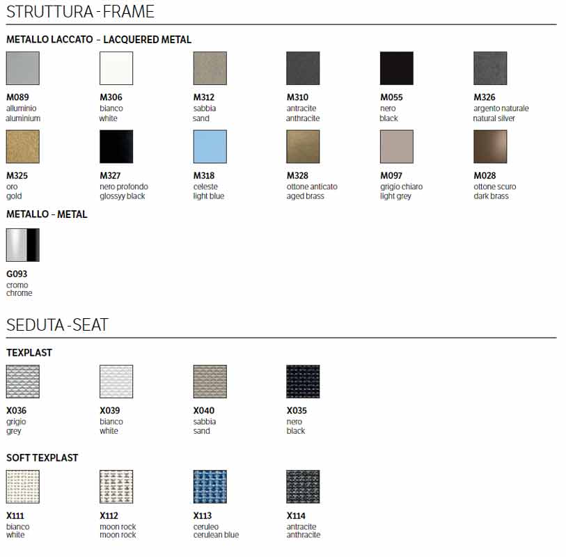 La struttura della sedia Net Bontempi Casa è realizzata in varie tonalità di: