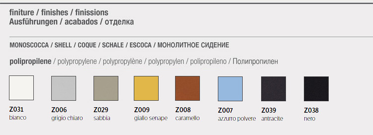 La struttura della sedia Gipsy è realizzata completamente in polipropilene e fibra di vetro disponibile nei colori: