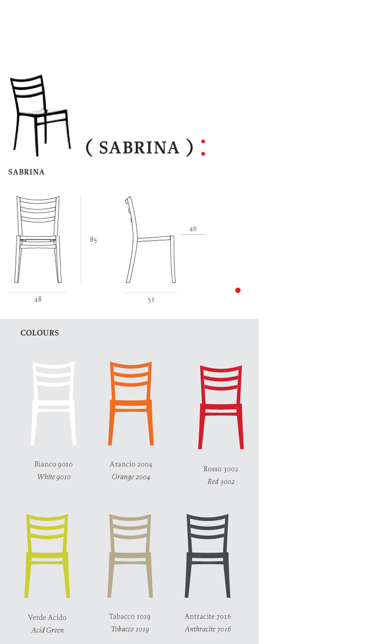 La sedia Sabrina è disponibile nelle seguenti colorazioni: