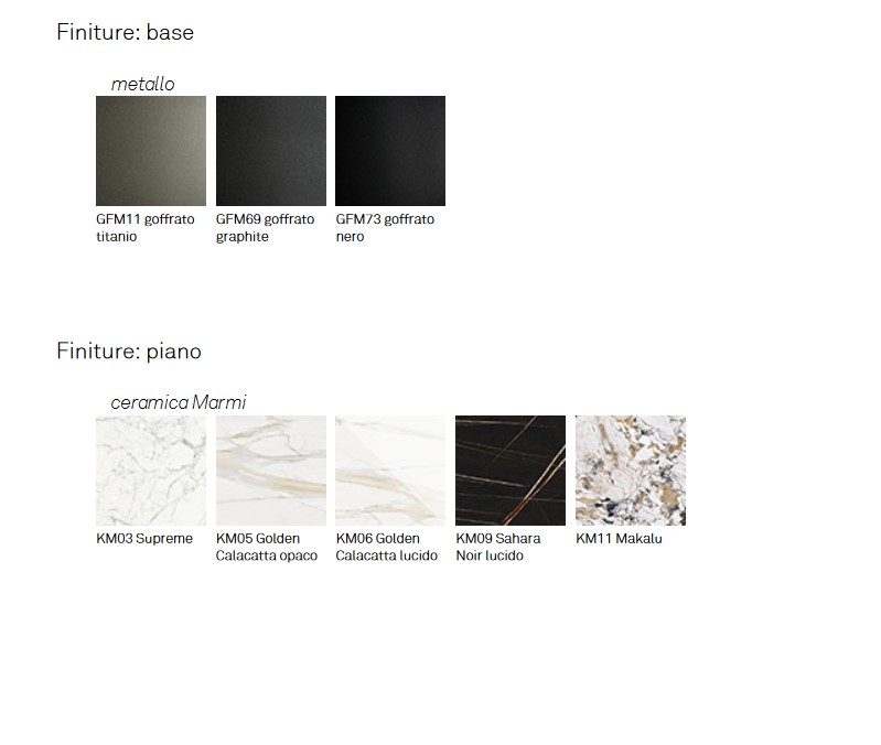 Il piano del tavolo Ipanema Keramik Cattelan Italia è disponibile in Ceramica Marmi nelle seguenti finiture: