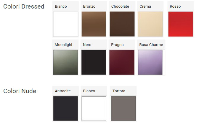 La struttura è completamente in polietilene, disponibile nella versione base o laccata, nelle seguenti finiture: